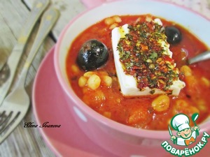 Гигантес яхни с куриными колбасками