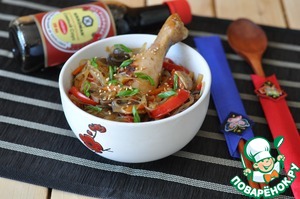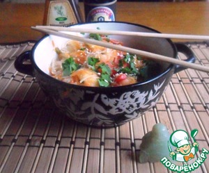 Салат из фунчозы с овощами и креветками