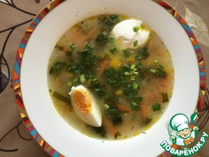 Зеленый крем-борщ с яйцами-пашот