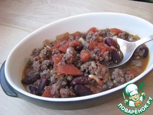 Индюшачьи сердечки с фасолью и осенними овощами (свежими и маринованными) в тажине